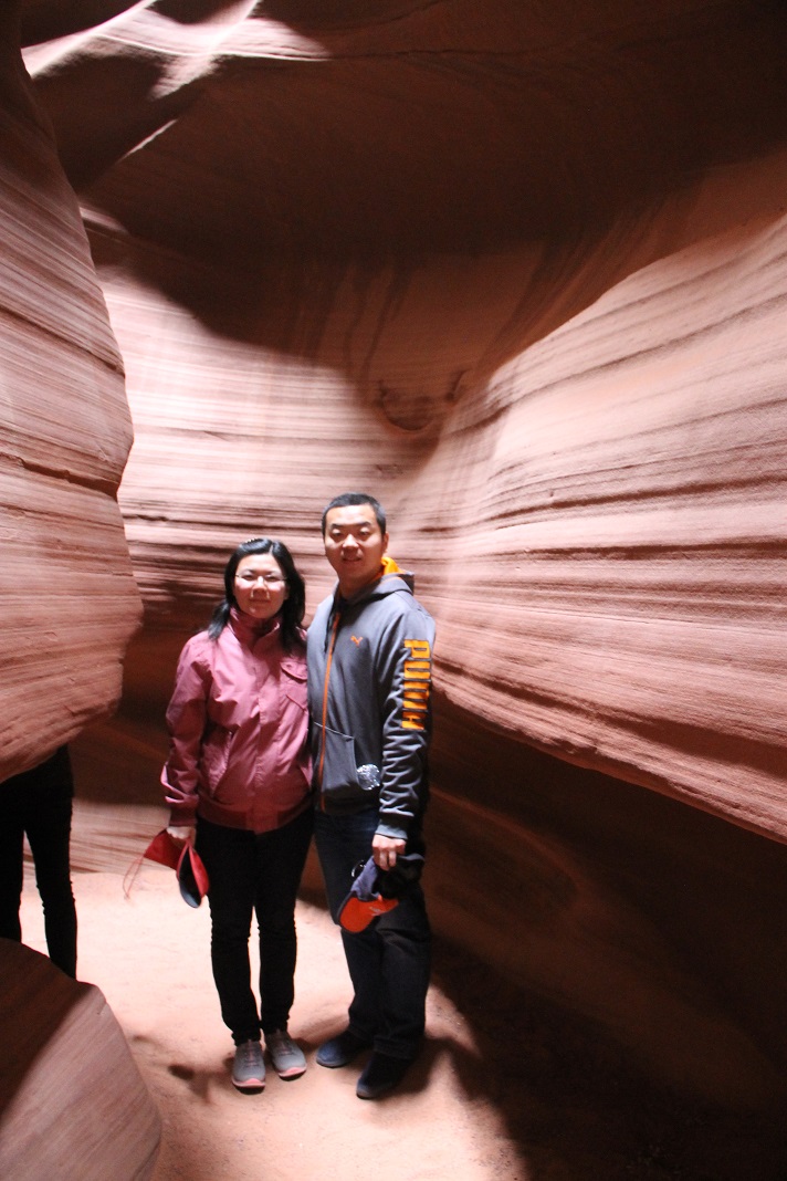 Antelope Canyon · 羚羊谷: 羚羊谷是印第安人的领地。这里什么国家公园年票也不好使。一定要跟团才能进,我们订的公司是Antelope Canyon Tours,去Upper Antelope Canyon。说到这里,其实有两个Canyon,一个upper,一个lower。我看了一些介绍,感觉没啥区别,就随便选了一个。如果是照相狂的话,你需要具体看一下区别,我反正是不care。去羚羊谷最好的时候是夏天,可能会出现阳光直射,冬天去的话是没有阳光直射的,而且我们去的那天有点天阴,所以就谷底就更暗。总体来说景色还是非常好的,就跟windows桌面advertise的类似,有没有直射都不错。然而,有几点要吐槽!